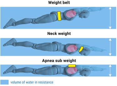 More effective than the weight belt in dynamics. On the other hand, if the weight is too high, you can dive more forward, and offer a resistance to water that is not optimal.
